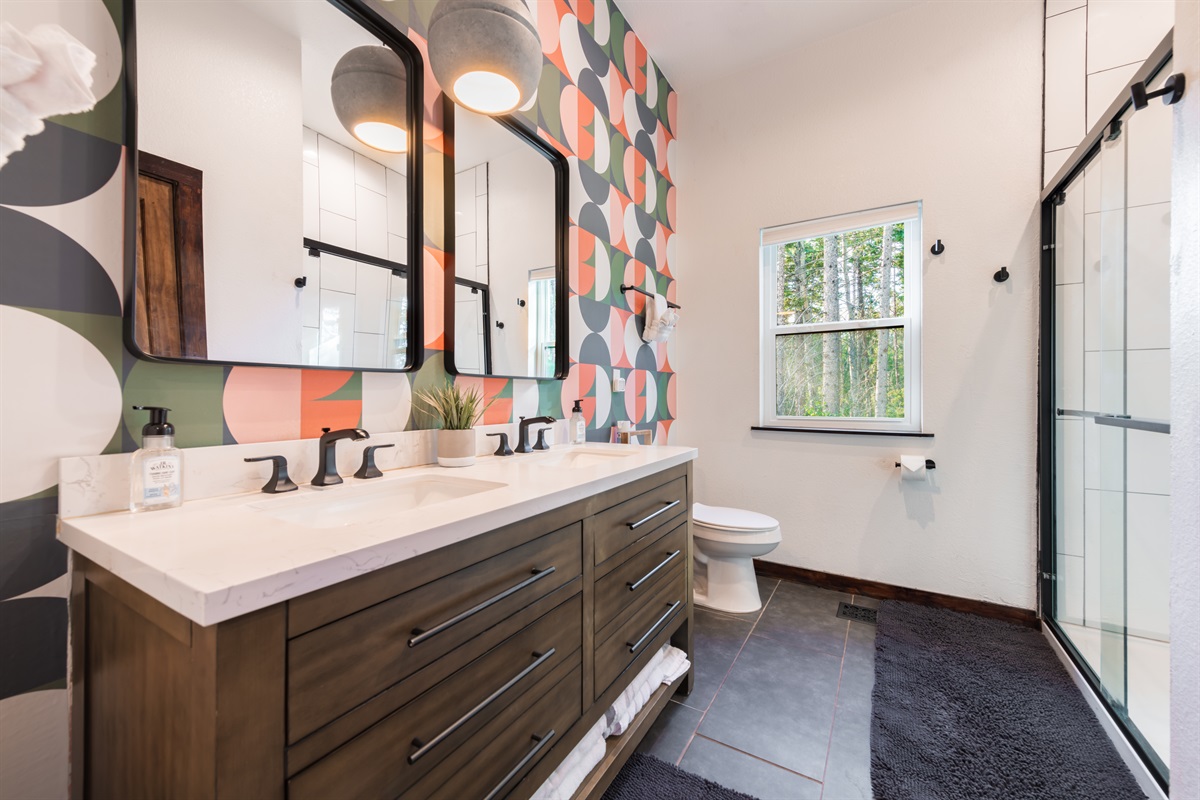 We've made a significant effort to make showers enjoyable. Pressure booster pump, water softening and filtration systems, tankless water heater and high-flow shower heads make it what it should be.